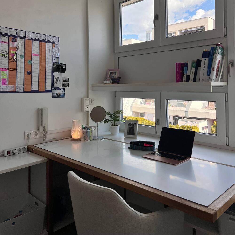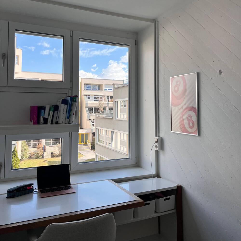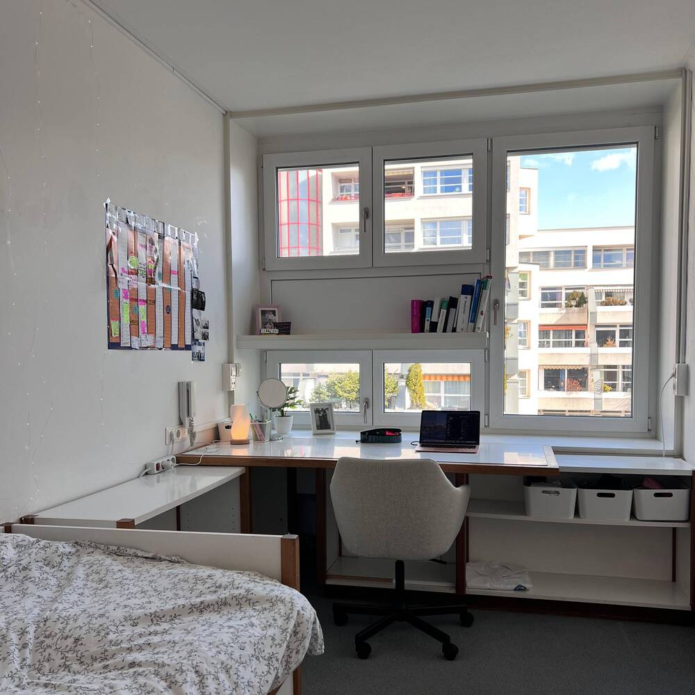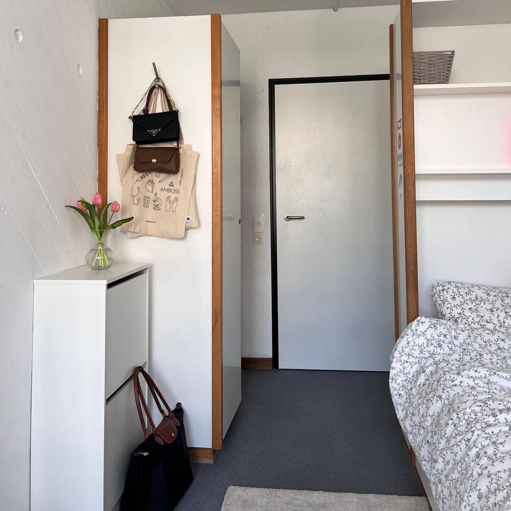Die Einzelzimmer bieten dir die nötige Ruhe zum Lernen und Entspannen. Jedes Zimmer ist mit einem Waschbecken ausgestattet. Duschen und WCs befinden sich in ausreichender Zahl auf den Gängen.